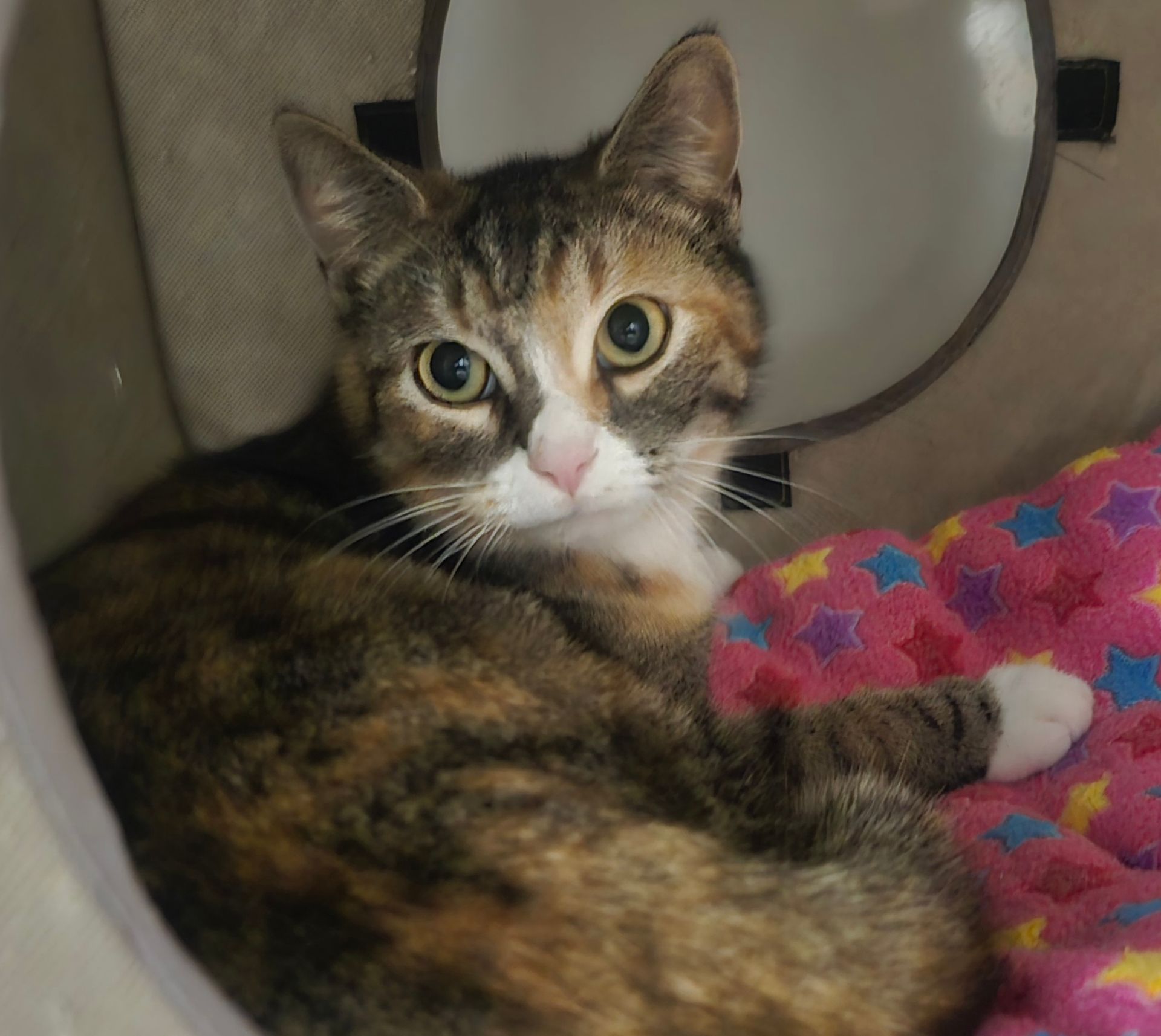 When a kind person found me alone as a kitten, they looked for my mother. But when my mother didn't show up, they knew I needed help. They got me to a foster home for The Rescue House, where I was able to get the care I needed to thrive. And now I'm healthy and happy. It took me next to no time to start exploring things when I arrived. I'm a little cautious with other cats even though I like them. Give me time, though, and I become friends with them. Come see me interact with both other cats and people. It will make you smile!
